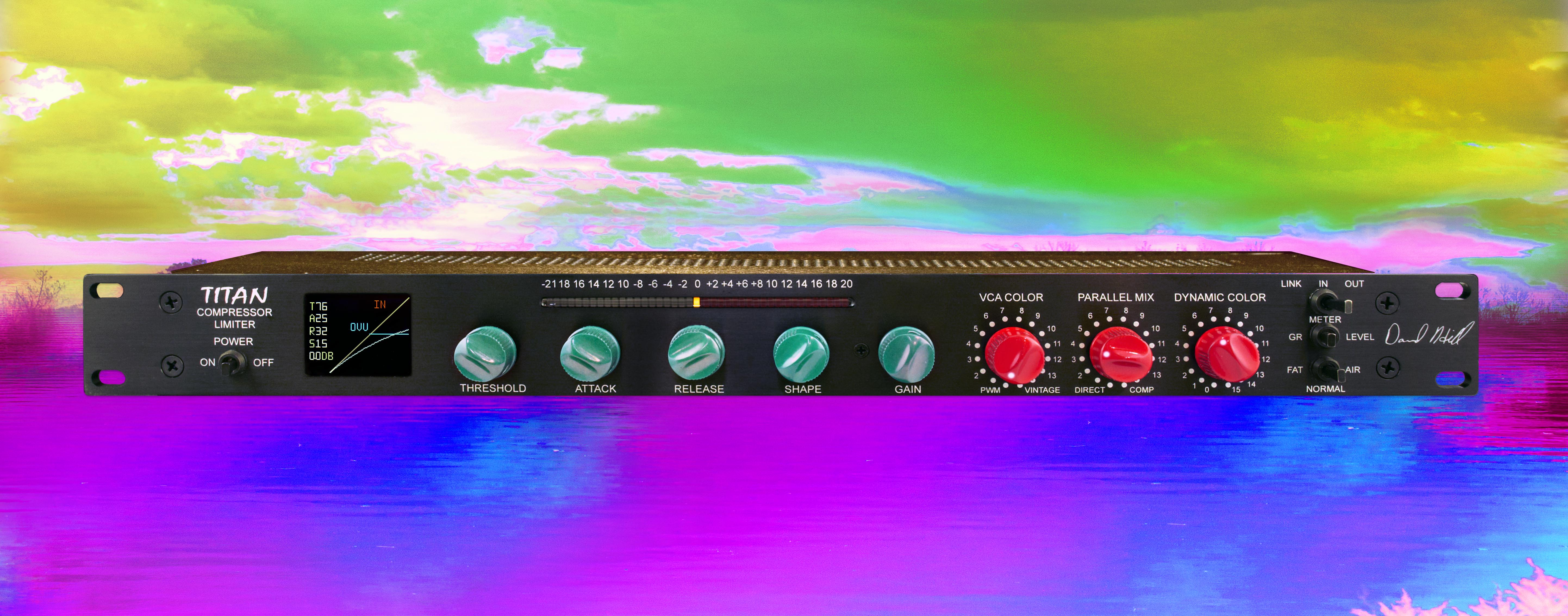 Titian is an analog compressor-limiter with a very large range of color and control choices with recall. The main audio path is a discrete class A design. Resetability is attained by using stepped controls and encoders that have their values displayed on Titian's color LCD display. Titian is a digitally controlled analog device in design with a very high speed dsp side chain that allows the design to push the limits beyond what is possible in the design of an analog side chain.