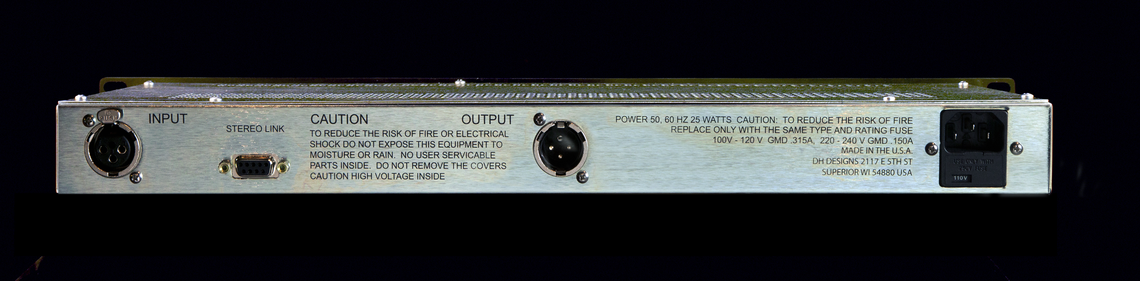 The compressor-limiter controls are the normal; Threshold, Attack, Release, Shape, Bypass-In-Link, Meter Select, and make up Gain. These controls have their settings displayed on a color LCD display. The Shape control shows the knee of the compressor. With the knee characteristic being graphically drawn on the LCD to allow the user to see the knee's shape. The graphical display updates with the changing of the Threshold and Shape controls. When stereo linked the unit selected as control master will control all functions on the second channel.